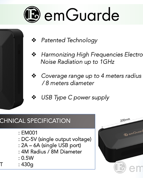 emGuarde™ harmonizes targeted high frequencies electromagnetic disturbances (3Mhz-1000Mhz), creating a safer and healthier home